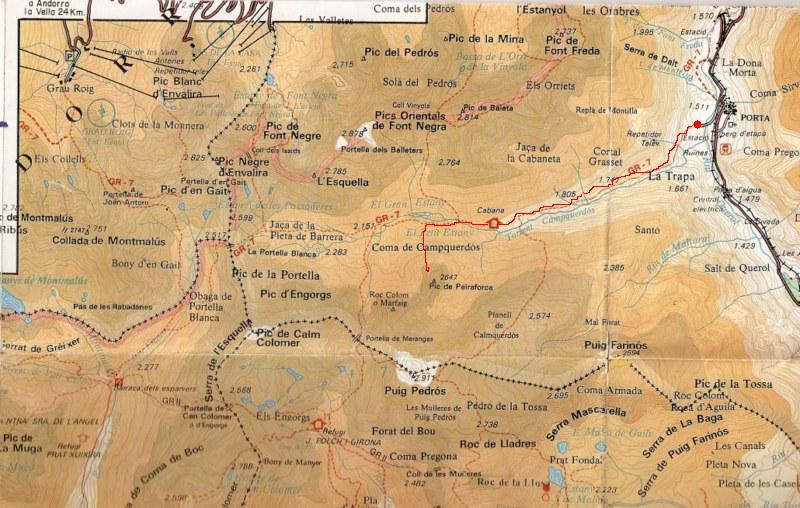 Punta de partida: Desde Puigcerdà a Pymorens, al llegar a porta cruzaremos por un túnel a mano izquierda las vías del tren al termino del asfalto dejaremos el coche.