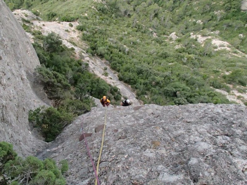Escalada rápida y fácil, ideal para días de verano calurosos, ya que hasta medio día le da la sombra por su orientación. Bien asegurada y con roca buena.